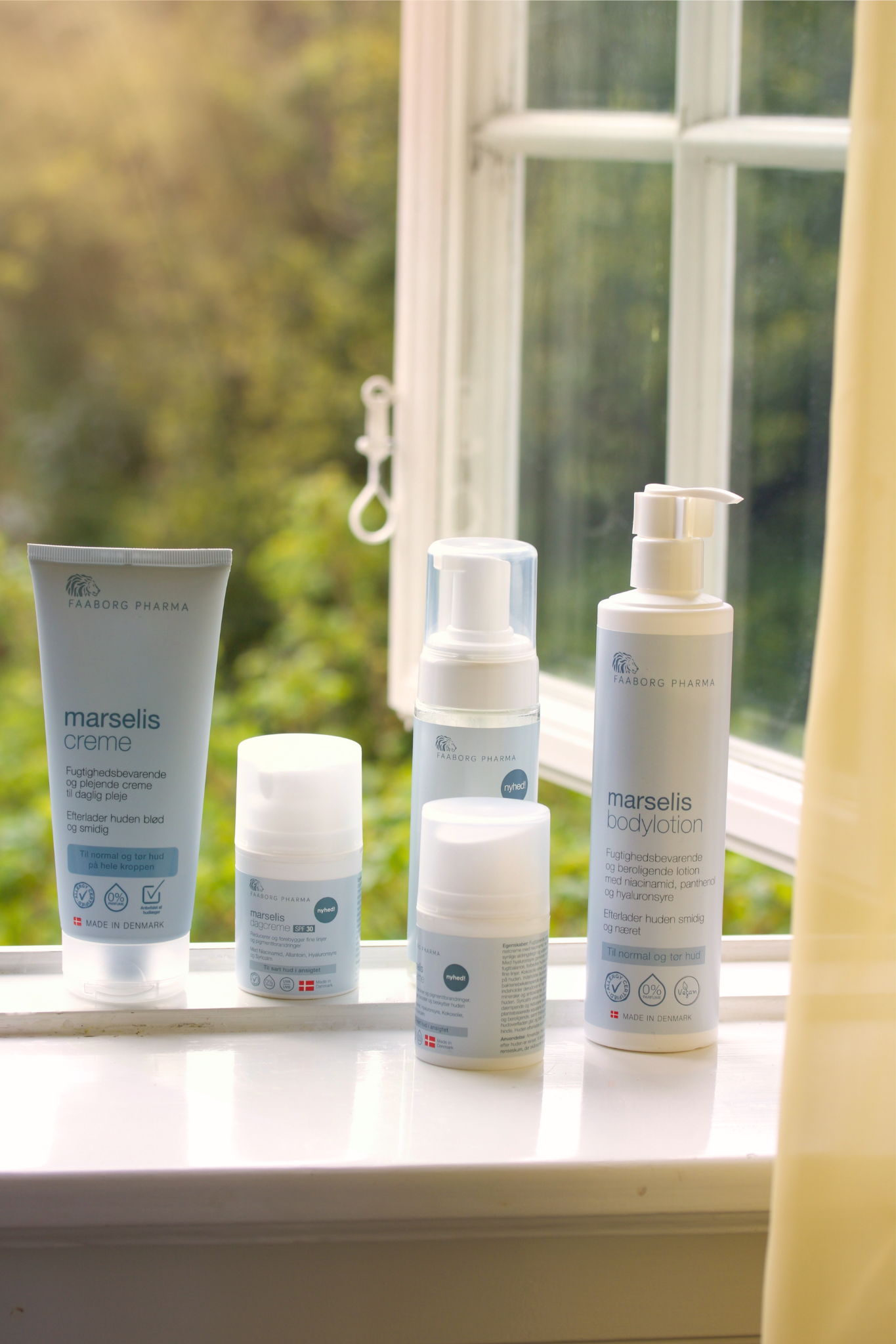 Marselis-serien är en enkel och effektiv daglig hudvårdsserie. Serien består av ett rengöringsskum, basiskräm, bodylotion, dagkräm med SPF 30 och en nattkräm.